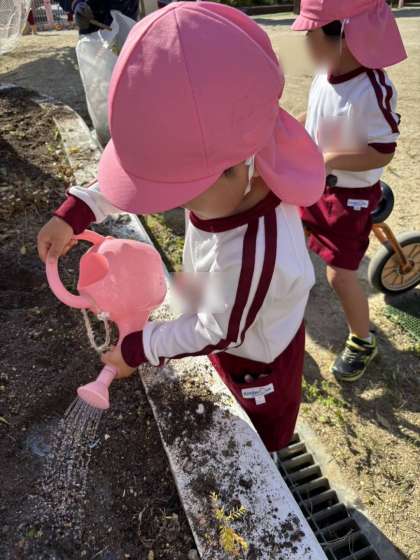 花壇の片付け(3歳児・桃組)