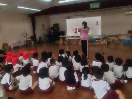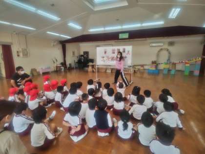はさみの持ち方やはさみを使う時の姿勢などについて、◯×クイズ形式で話をしていくと、経験の多いあお組、あか組はもちろん、もも組の子どもたちもよく理解していて、とてもびっくりしました^_^