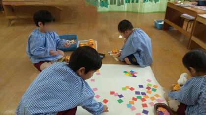 作品展を楽しみにしながら、いろいろな素材遊びをしています。