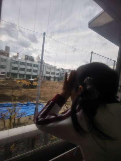 おやつを食べた後も、重機が動く音がする度に『今度は望遠鏡で見るねん』と手で望遠鏡をつくり眺めていました☆
