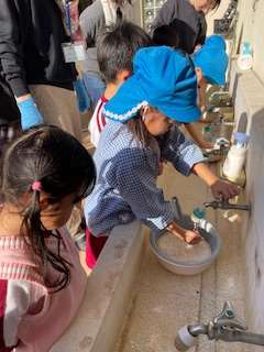 PTAの保護者の方に研ぎ方を教えていただき、一人一人優しく丁寧に研ぐ姿が見られ「水が白色から透明になってきた〜!」「溢れないようにそーっとしないと!」「明日のもちつき楽しみやな〜!」と期待も高まっています!