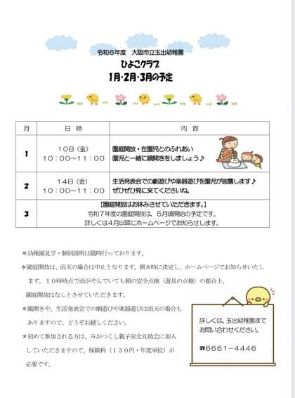 3学期のひよこクラブ(未就園児活動)の日程について