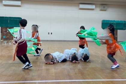 皆で考えたことを踏まえて、絵本とは異なるストーリーで、劇遊びをしようということになりました。