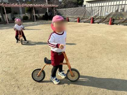 只今、テラスの工事中 (3歳児・桃組)