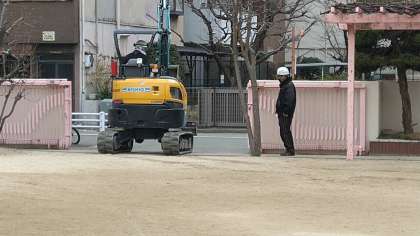 重機が運び出される光景には興味津々。