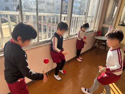 けん玉遊びも日を追うごとにいろいろな技ができるようになり、「もっとこの技ができるようになりたい!」と難しい技にも意欲的です!