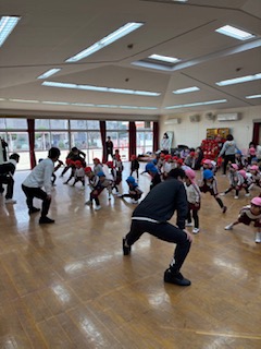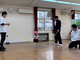 跳べるかな…と不安そうな子どもたちも、(講師の方のうま〜い回し方のおかげで、笑)みんなとても上手に跳ぶことができました!