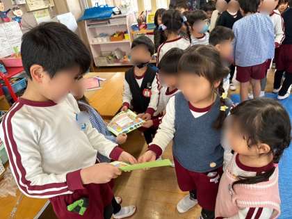 一人一枚もらえたことで、かばんに大切に入れて持って帰り家でも読んで楽しみたい、保護者の方にも見せたい、園のロッカーの中に大事に入れておきたい!とそれぞれ大切にしながらお別れ会への期待を高めていました。