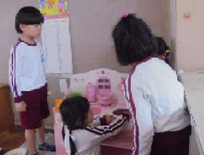 身支度のお手伝いに、青組(5歳児)さんが来てくれました!