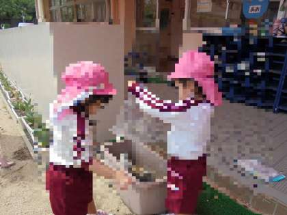 外遊びの途中「先生何やってるの?」「わたしもやりたい〜」とふれあい栽培の準備を手伝ってくれました☆