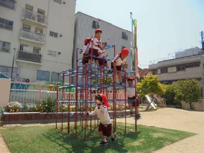 動物いっぱい探したよ!! 公開日 2025/04/30 更新日 2025/04/30 ☆お知らせ☆ ジャングルジムからあたりを見渡す子どもたち。 子どもたちになにしてるの?と問いかけると、「動物探してるねん」「ティラノサウルおった」などと色々な動物を探していました。 子どもたちは、熱中症対策もしっかり行っています。 「あつい、あつい」と顔を真っ赤にして水分補給をおこなっていました!! いいね(0)