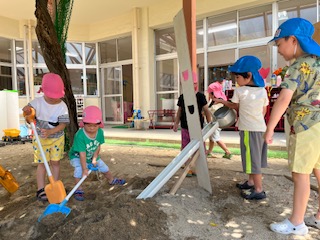 水遊び気持ちいい〜♪ 公開日 2022/06/14 更新日 2022/06/14 ☆お知らせ☆ 暑くなってきたので、天気のいい日には水遊びを楽しんでいます☆ 水の冷たさや泥の感触が気持ちよくて、子どもたちは夢中になって遊んでいますよ〜♪ いいね(0)