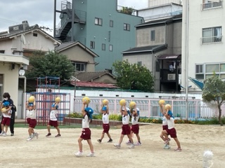 また、サッカー遊びだけではなくて、上に投げてキャッチしたり、ボールをついたりする遊びにも繰り返し取り組んでいます。