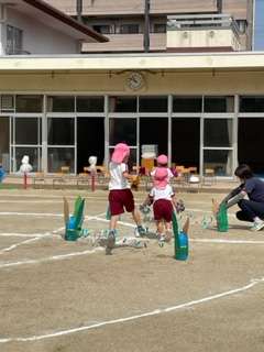 運動会当日は、クラスごとの運動会なので、他のクラスの演技や競技にも興味をもって、見たり応援したりすることができました。