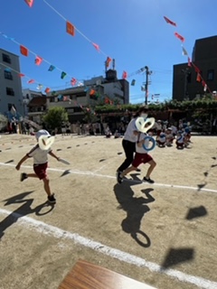カードをひっくり返すオセロゲームとリレーの競技では、応援してる方も力が入りました!最後まであきらめず、がんばりました!