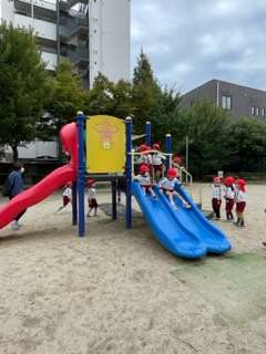 リュックに水筒を入れて持って行きました。公園の滑り台で遊ぶ時の約束も知り、守って遊ぶことができました。
