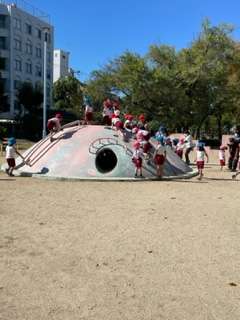 公園では、遊具の安全な遊び方や約束を聞き、順番を守って遊ぶことができましたね!