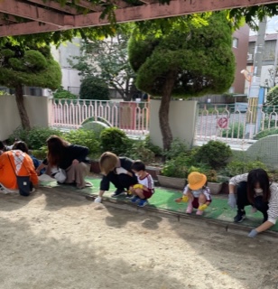 子どもたちも軍手をはめて、土をすくったり、草を抜いたりして頑張ってくれましたね!
