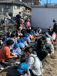 保護者の方と一緒に掘りました!とても、大きなお芋に子どもたちは、大興奮!掘るのは少し大変でしたが、その分、収穫した喜びも大きかったですね!