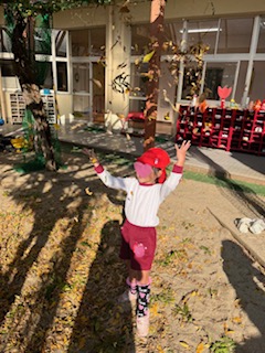 ヒラヒラ〜と舞う葉っぱに、子どもたち大喜び♪