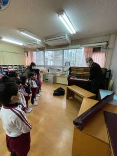 外遊びから戻ってきた子どもたちは、どこかから聴こえてくるピアノの音の方へ・・・♪