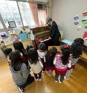 今日は、各クラスと遊戯室のピアノの調律をしていただきました。