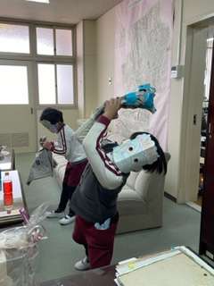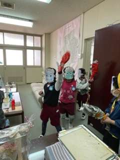 「鬼は外〜」と豆をまくと、鬼は逃げていきました!