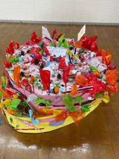 創立記念日のお祝いに全園児で作ったケーキも飾ってお祝いをしました。