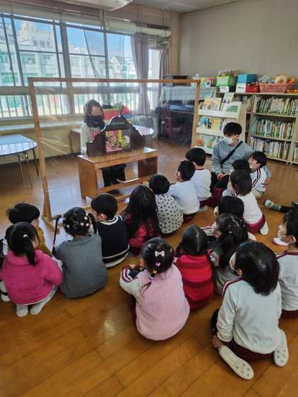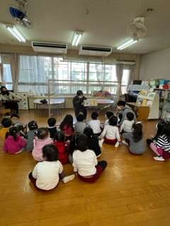 子どもたちは、とても静かに聞いており、「今日の絵本は何かな?」と興味をもつようになったこと、最後まで聞けるようになったことは、毎月の絵本の読み聞かせのおかげですね。