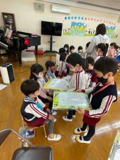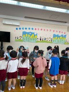 あか組さんともも組さんから、時間割表ファイルをプレゼントしました。