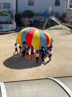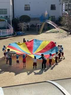 「幼稚園の思い出として、何して遊びたい?」と話し合い、パラバルーンに決定!