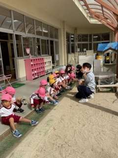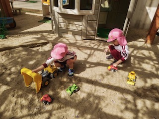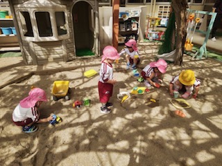 桃組(3歳児)にとって、幼稚園で遊ぶのは2回目!