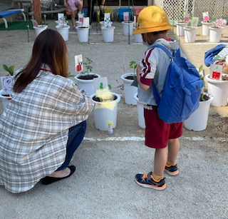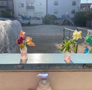 降園時には、保護者の方に自分の飾ったお花を見てもらい、嬉しそうにしている子どもがたくさんいました。