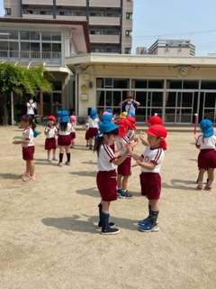 久しぶりの集会☆ 公開日 2023/05/22 更新日 2023/05/22 ☆お知らせ☆ 久しぶりに3クラスで集会をしました。 異年齢児とペアになり、『大好きっちゅ』の仲良し遊びを楽しみました。 かわいい振り付けがとても可愛かったです! いいね(0)