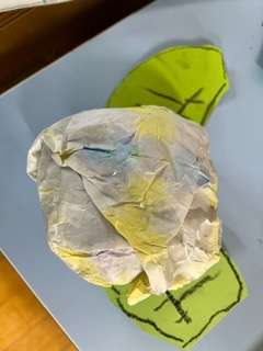 赤組は、『染め紙』の技法でアジサイの製作をしました。