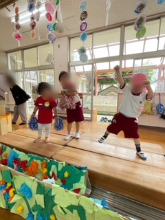 先日遊んだオリエンテーリングの遊びをいくつか準備し、ひよこクラブのお友達と一緒に遊びました。