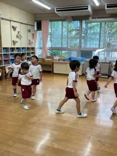 ピアノの曲に合わせて歩いたり、止まったりして遊びました!
