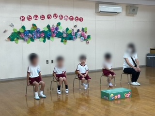 5月に欠席していた誕生児と6月の誕生児と誕生月の教職員のお祝いをしました。