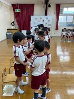 赤組(4歳児)から紙コップで作った「ジャンプするカエル」のプレゼントをもらいました♪
