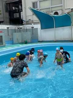 プール開き後、桃組にとって、初めてのプールに入りました。