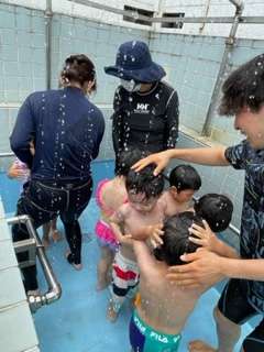 大きなプールに少し緊張気味でしたが、遊んでいるうちに笑顔になり、最後は「楽しかったなぁ〜」と満足そうでした♪