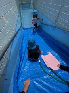 最後は、使ったビート板をもう一度洗い、楽しいスライダー遊びは終わりました!