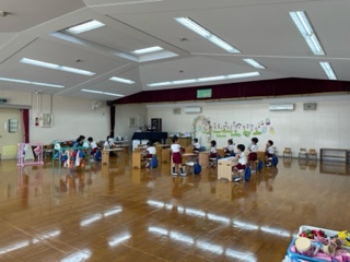 暑さ対策のため、預かり保育の場所を遊戯室に変更しました!!