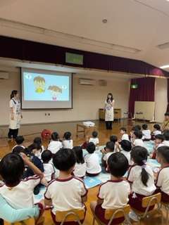今日は、花王株式会社より手洗い名人さんが3人も来てくださって手の洗い方について教えてくださいました。