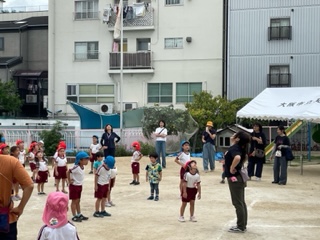 園児と一緒に体操したり、かけっこしたりして遊びました。