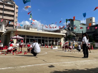 玉入れでは、運動会までに秘密の特訓をして頑張っていた赤組さん!