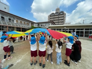 青組(5歳児)のパラバルーンの演技をみんなで見ました!