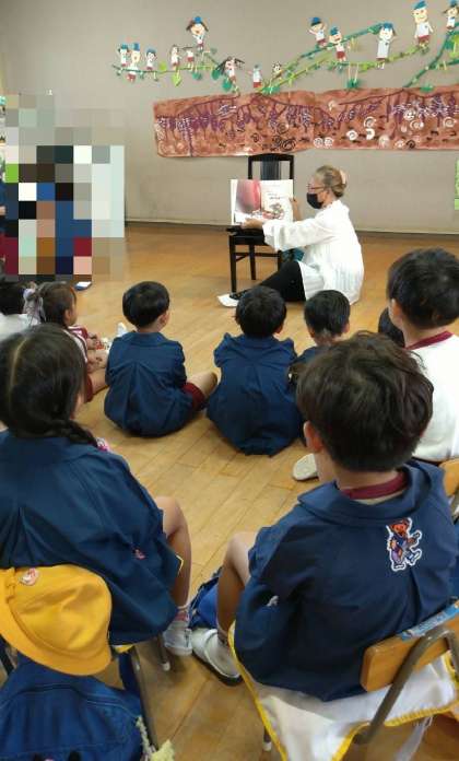 芋掘りに向けて、保護者の方が選んでくださった「いもほり」の絵本は、ニワトリが植えたさつまいもの苗が、秋になり丸々と大きくなった話でした。子どもたちは明日の芋掘りを想像しながら、興味をもって見ていました。「明日はどんなお芋が掘れるかなぁ?」と聞かれると、「大きいお芋!」と答え、「どうやって食べる?」と聞かれると「天ぷら!」と答えていました。