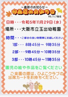 ☆作品展のお知らせ(未就園児活動ひよこクラブ)☆