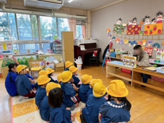 保護者の方による絵本の読み聞かせの時間は、「今日きてくれるのはだれかな〜?」と子どもたちにとって特別な時間となっています!